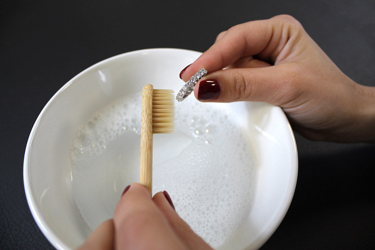- ¿Cómo se deben limpiar las joyas? Preparar agua tibia con un poco de jabón gel de lavar platos. Sumergir en ella las joyas y frotar cuidadosamente con un cepillo suave. Enjuagar con agua tibia y dejar secar con el aire.